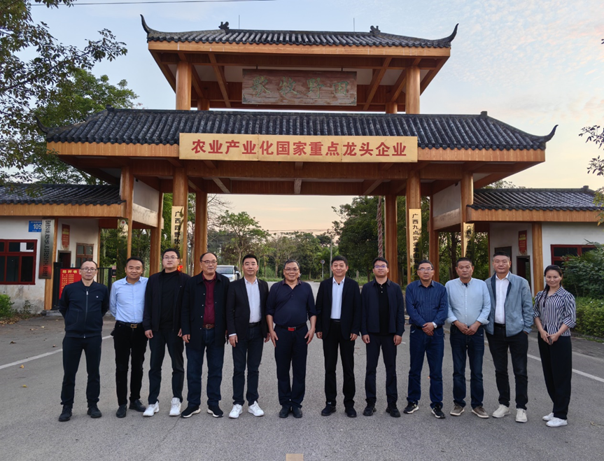 在副会长单位广西富凤农牧集团有限公司的富凤鸡产业核心示范区,李结华一行详细了解富凤鸡养殖、屠宰、加工、销售全产业链发展情况,及企业的联农带农机制。富凤农牧依托自身技术优势,从2004年起步,到创建现代特色农业示范区,再到全产业链发展,目前已成长为一家集农牧科研、家禽育种、禽苗孵化、肉猪生产、家禽养殖、饲料生产、畜禽屠宰加工、冷链物流、食品深加工及销售为一体的农业产业化国家重点龙头企业。富凤集团还充分发挥龙头企业带动作用,以“公司+基地+农户”的产业化发展模式联农带农,带动全区7000多户农户从事富凤肉鸡、肉鸭、肉猪的养殖,帮助农户增收致富,为乡村振兴贡献力量。