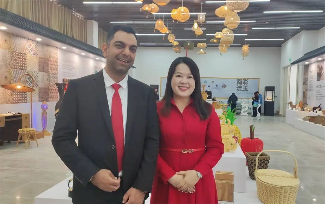 特别值得一提的是,本次博览会还吸引了印度外商参展。“今天来参加博白的展览会感觉非常棒,我的客户都觉得博白的篮子好,实用又精致。”印度外商曼尼·卡纳与博白县佳裕工艺品有限责任公司合作已经12年了,他对博白的编织工艺品赞叹不已。