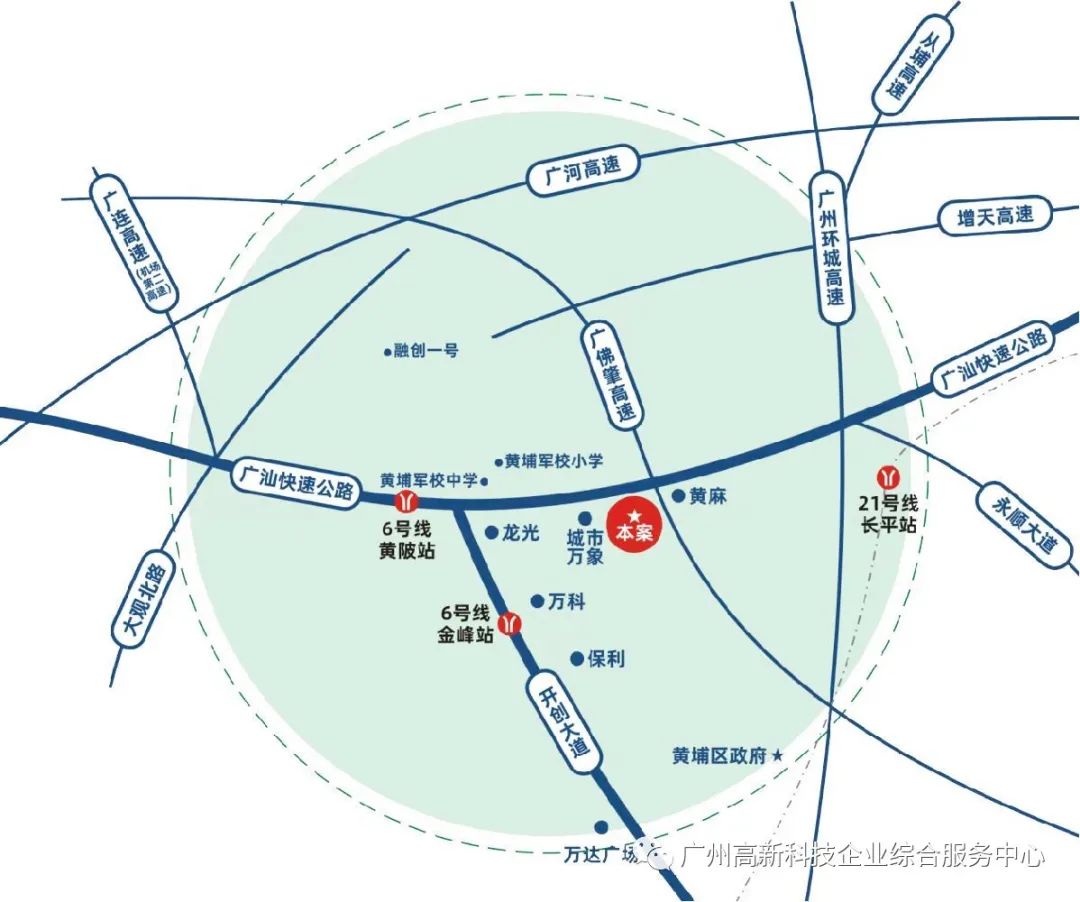 项目位于广州市黄埔区广汕快速公路南边,开创大道西面。