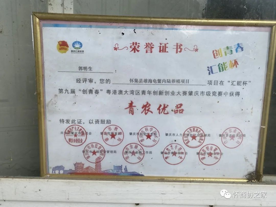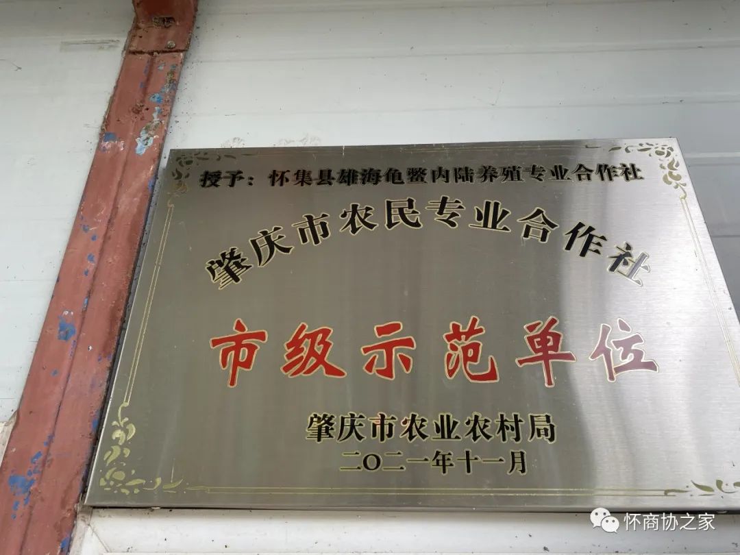怀集县雄海龟鳖内陆养殖专业合作社于2018年底成立。是一家以从事养殖、销售黄沙鳖及其他品种鳖的养殖基地。基地位于肇庆市怀集县诗洞镇健营村,健营村于2020年被评为广东省“一村一品”金边黄沙鳖养殖专业村,该合作社也于2021年评为肇庆市市级示范社。