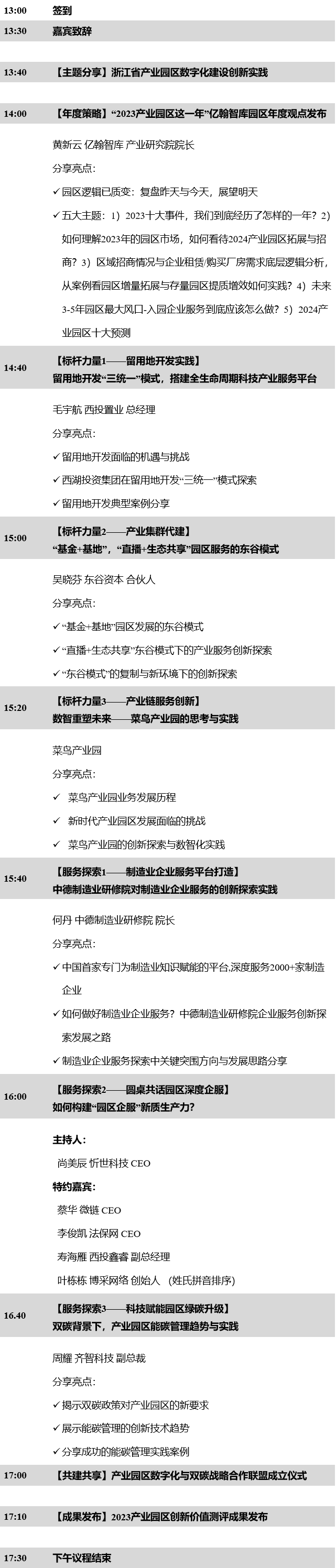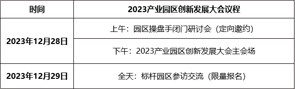 本次年度峰会不仅是一个交流的平台,更是一个凝聚智慧和力量的平台。我们期待与您共同探讨产业园区未来的发展方向和创新模式,共同为中国产业园区的发展贡献智慧和力量,共同回顾2023、展望2024,挖掘出被忽视的行业亮点,寻找那些能给我们带来信心的案例,提炼出那些正在推动行业向前发展的创新模式。