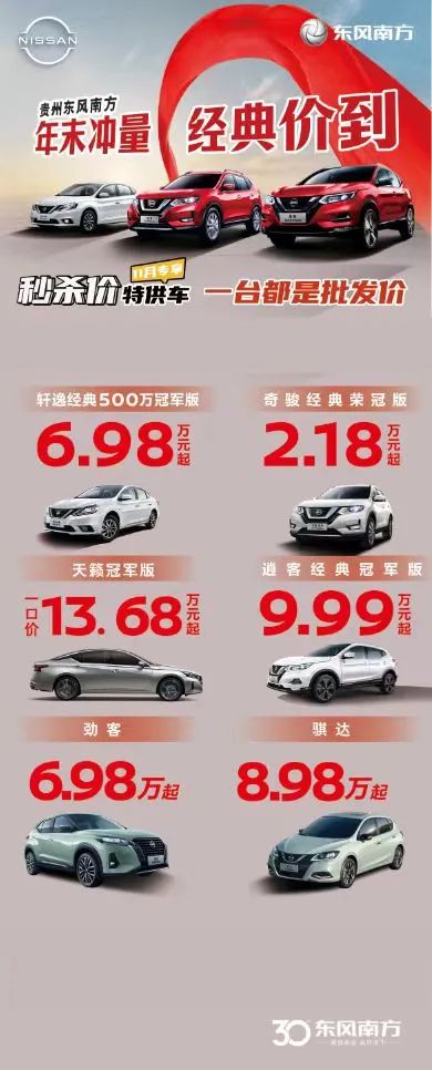 转眼来到年底了,今年你买车/换车了吗?若还没有得抓紧了,趁年末购车促销可以抢占诸多好处,如优惠福利多、车型选择丰富、方便过年出行等。值得贵阳所有买车市民关注的是2023第五届贵州汽车交易会于12月15-17日在贵阳国际会议展览中心7号馆举行,参展品牌连续三天释放厂价政策,把年内最后一波大促优惠给到消费者。本届展会由贵阳市孟关经贸促进商会、武汉尚格会展股份有限公司主办,贵阳尚格会展服务有限公司执行承办。
