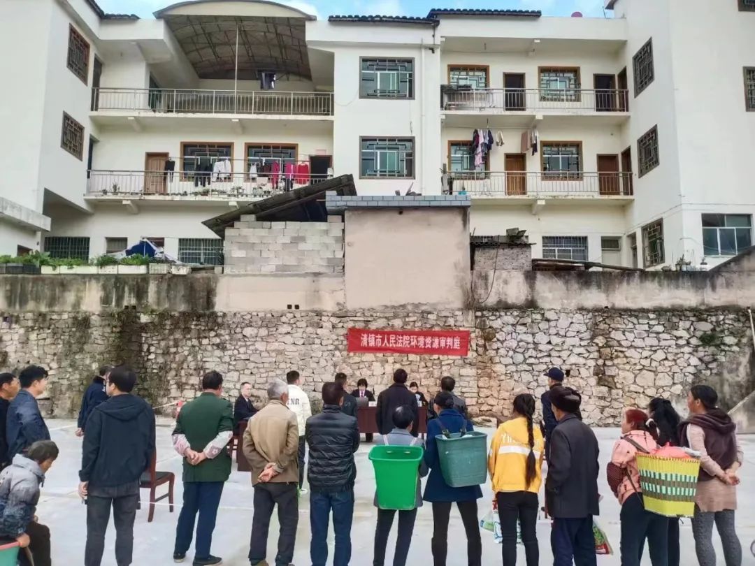 2023年12月14日上午,清镇市人民法院环境保护法庭在清镇市麦格乡政府旁巡回审理了被告人黄某某、徐某某、龙某某、任某某危险作业三案,并进行集中宣判,近百名当地群众旁听了案件庭审。