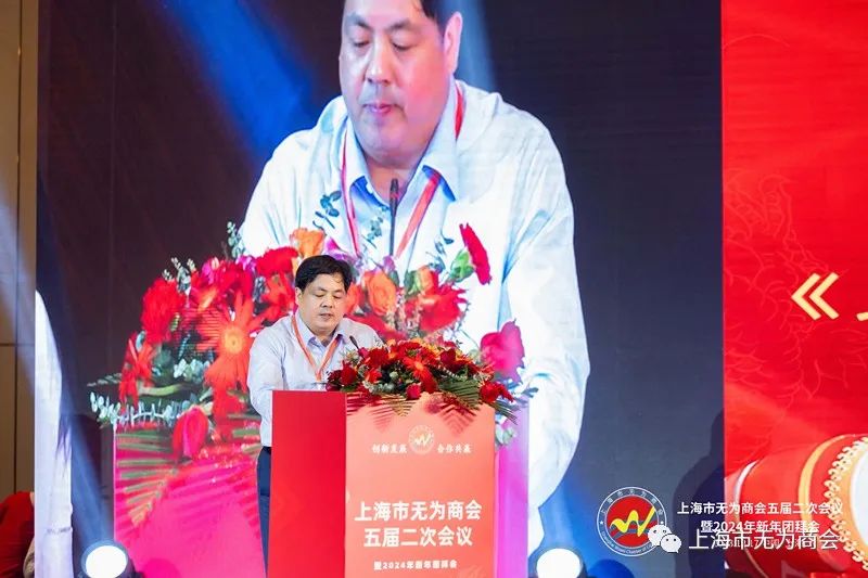 上海市无为商会会长、中盈烁工程集团有限公司董事长范修荣先生则发表了《上海市无为商会2021年至2023年度工作报告》。他全面回顾了商会在过去三年中的工作成果和付出的努力,包括会员服务、经贸交流、公益事业等方面的成绩和亮点。