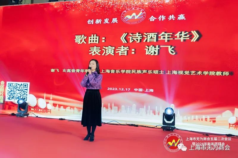 会议的最后一项议程是精彩的文艺演出。在欢快的开场舞之后,著名歌手谢飞带来了经典歌曲《诗酒年华》,深情的演唱将现场气氛推向高潮。随后的歌曲、摇滚、书法表演、杂技、魔术等节目精彩纷呈,为与会嘉宾带来了一场视听盛宴。期间还穿插了多次抽奖环节,丰厚的奖品让现场气氛更加热烈非凡。