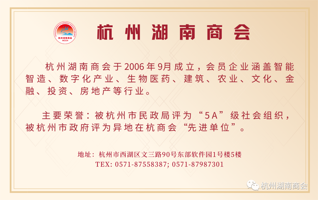 杭州湖南商会历经整整十八载,回顾来时路,走好脚下路,坚定未来路,商会将在当今不断变化的时代浪潮,同心同向,团结会员,携手奋进、相互扶持,为共同的目标,一起拥抱时代的浪潮,一起见证商会的荣耀与明天!
