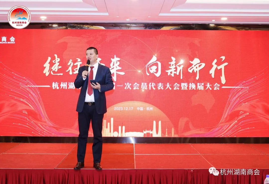 2023年12月17日“继往开来 向新而行”杭州湖南商会成功换届暨第六届第一次会员代表大会在浙江三立开元名都大酒店召开,杭州志卓科技股份有限公司总经理姜程钟当选为杭州湖南商会第六届会长。