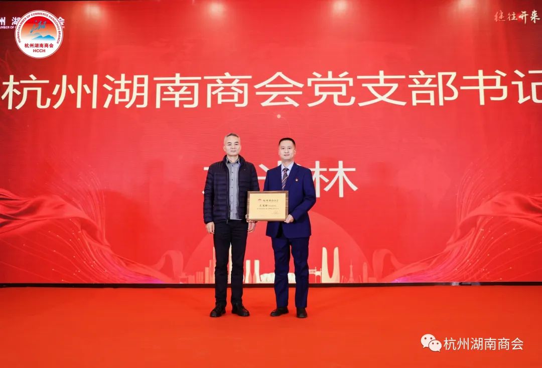 杭州市工商联组织建设部叶晓良部长为党支部书记左光林授牌。