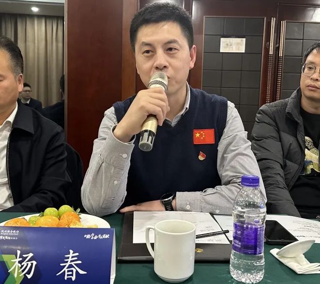 图为:商会党支部副书记杨春交流讲话