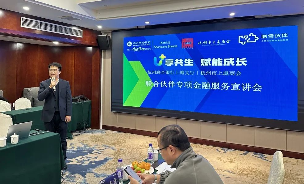 会上,杭州联合银行钱江支行行长罗俊为企业家们分享了各项金融产品和服务,包括贷款、支付结算、增值服务等方面,并为商会的企业家们提供了定制的金融政策及专属的服务团队。