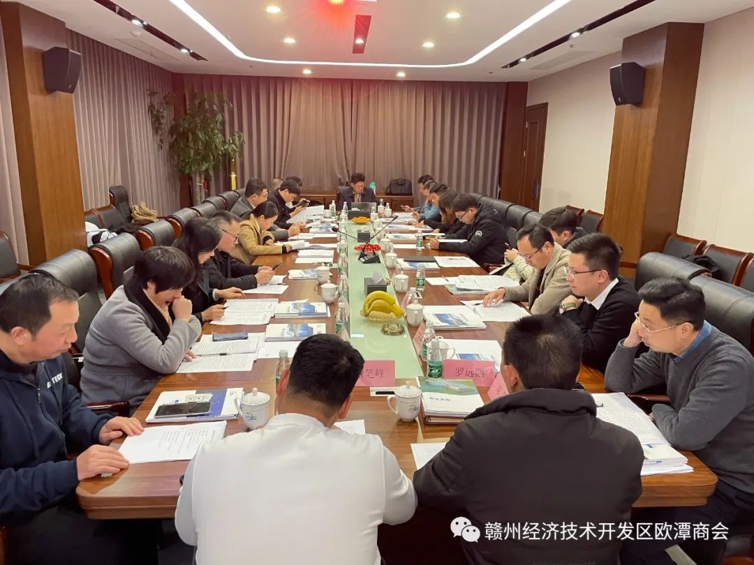 本次会议研究审议通过了《关于赣州经开区重点产业补链强链工作的调研报告》、《欧潭商会2023年度总结及2024年度计划》,部署了商会2024年会暨第一届第二次会员大会相关工作安排、2024年会长轮值制度安排及组织会员开展“血液凝聚爱心 行动诠释奉献”无偿献血活动事宜,并在会上通报了2023年度会费收取情况以及商会收支情况。