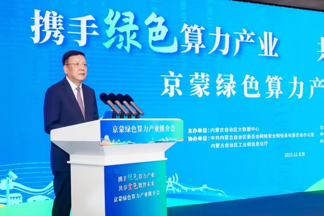 为推动京蒙在共享绿色算力资源、共建绿色算力设施、构建数据要素生态、推动数据跨域流通等方面合作交流,12月17日,由北京市经济和信息化局、内蒙古自治区大数据中心共同主办,北京市委网信办、内蒙古自治区党委网信办、内蒙古自治区工业和信息化厅、内蒙古自治区通信管理局协办,主题为“携手绿色算力产业・共享金色数智未来”的京蒙绿色算力产业推介会在京成功召开。