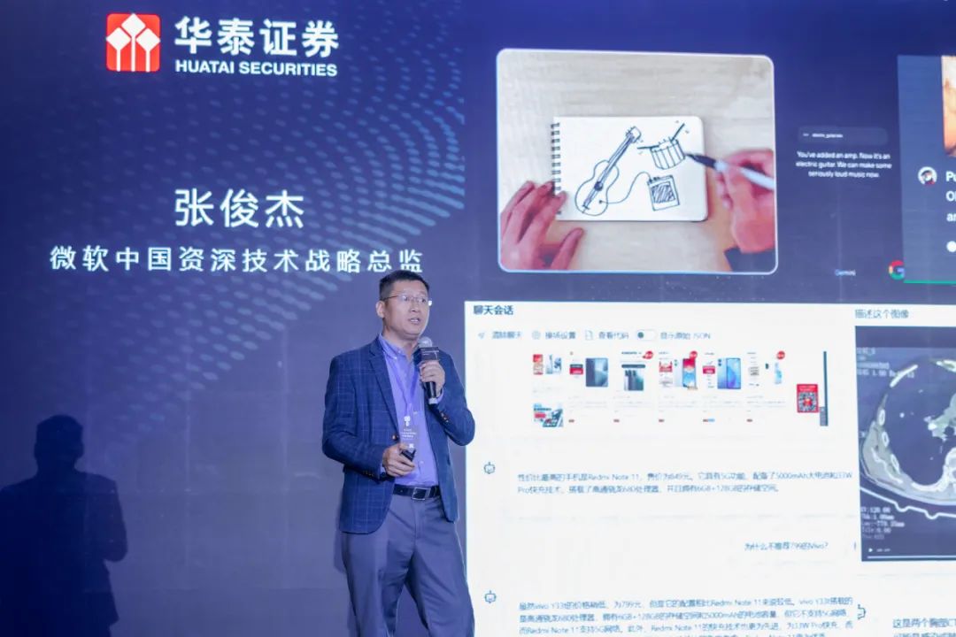 清华大学智能技术与系统国家重点实验室教授、人工智能研究院视觉智能研究中心主任邓志东教授,分享了对人工智能演化路径的思考,深度分析了人工智能产业未来发展的趋势。微软中国资深技术战略总监张俊杰介绍了不同行业在落地AI、应用大模型等方面的优秀实践。