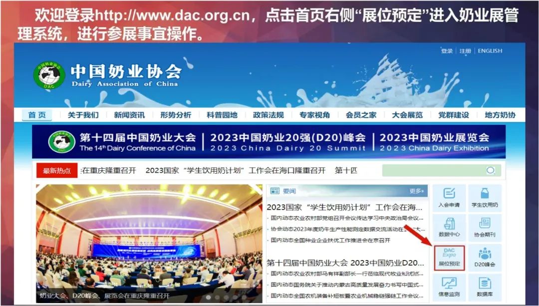 本届展览会共设15大展区,范围涵盖奶业全产业链全供应链的各个环节,从饲草饲料、繁殖育种、牧场建设、机械设备、动物保健到乳品加工、包装包材、乳品配料、物流运输、乳品消费、经销代理、外贸、金融融资等。本届展会特别设置有中国奶业20强及观察员展区、国家展团、特色展区等,预计参展企业600家,展览面积10万平方米。1.登录中国奶业协会2024中国奶业展览会管理系统(http://expo.dac.org.cn)填写并提交展位预定表。新用户需要先注册,老用户可直接登录。2.打开“中国奶业协会信息网”官网,点击右侧“展位预定”,进入展会管理系统页面。3.手机扫码下方二维码,进入中国奶业展览会管理系统。展位价格及优惠措施等详细内容,请长按下面二维码识别获取《2024中国奶业展览会招商招展细则》文件。