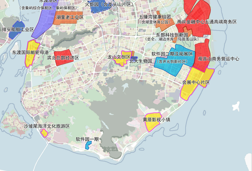 各色块都是产业聚集区,并不是说厦门公司就只在这几块,还有很多分散在住宅区的写字楼,或者直接在居民楼里。