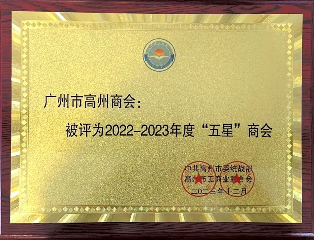广州市高州商会被评为2022-2023年度高州市五星商会
