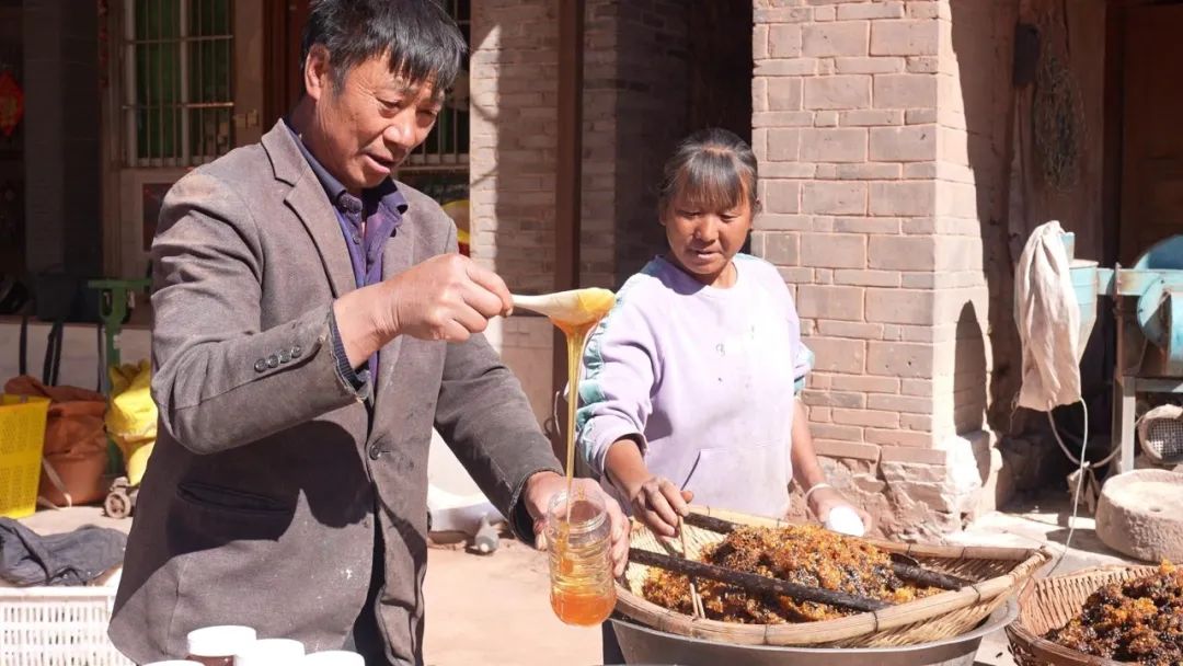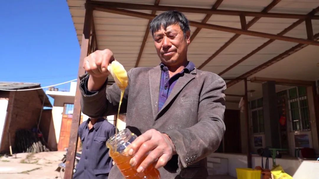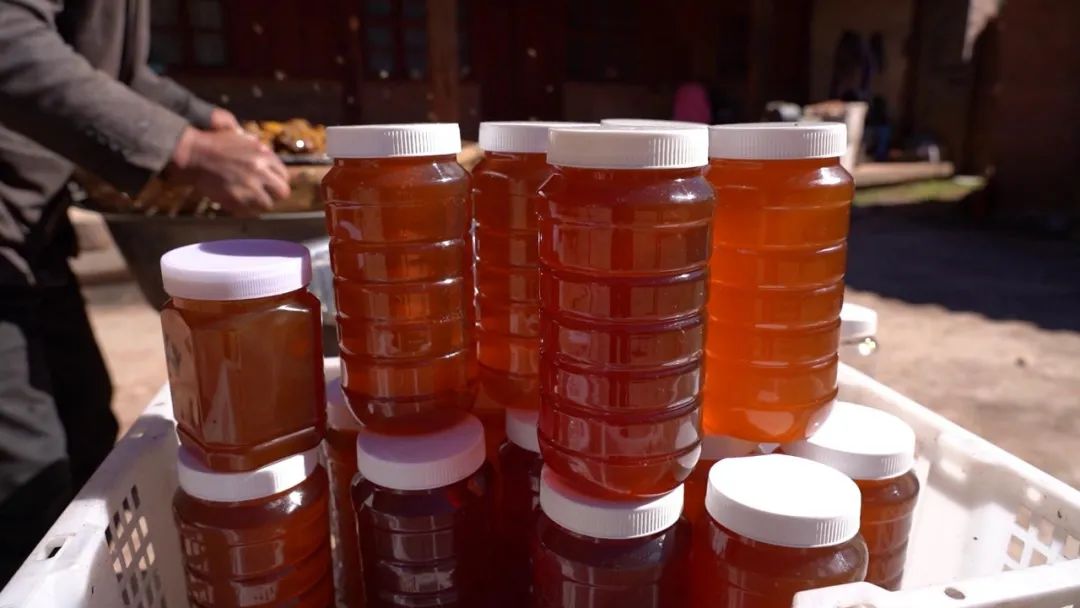 我们养蜂的历史比较长,以前养蜂的人比较少,从脱贫攻坚开始我们就将这个作为一个产业发展了,现在农户的经济收入还是比较好的,投入也比较低,爱好养蜜蜂的村民也比较多,这也是我们家乡的一种土特产品。