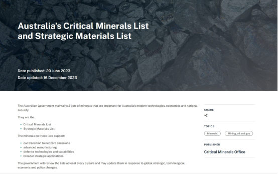 澳大利亚政府在公告中解释了新关键矿产清单的入选要求:
