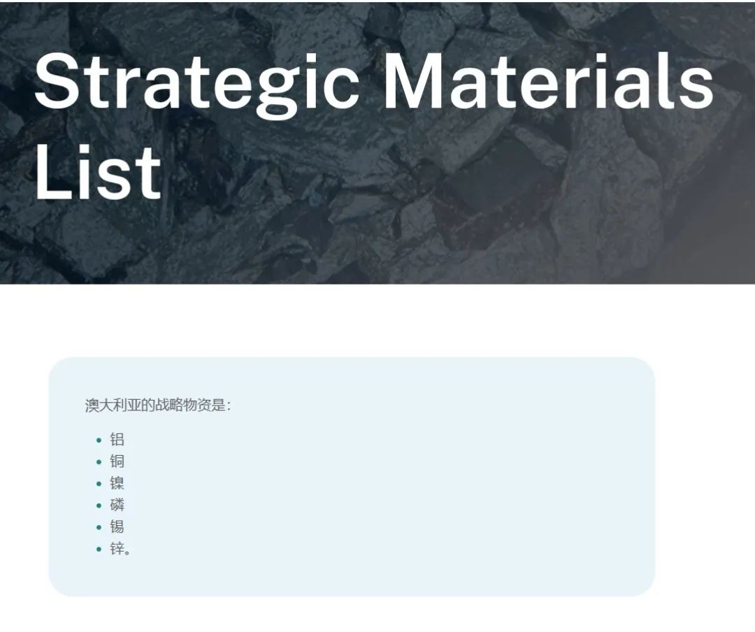 今年,澳大利亚政府不仅两次更新了关键矿产清单,同时还追加补充了一份“战略矿产清单”。