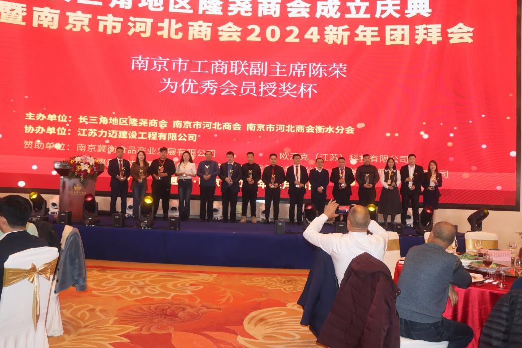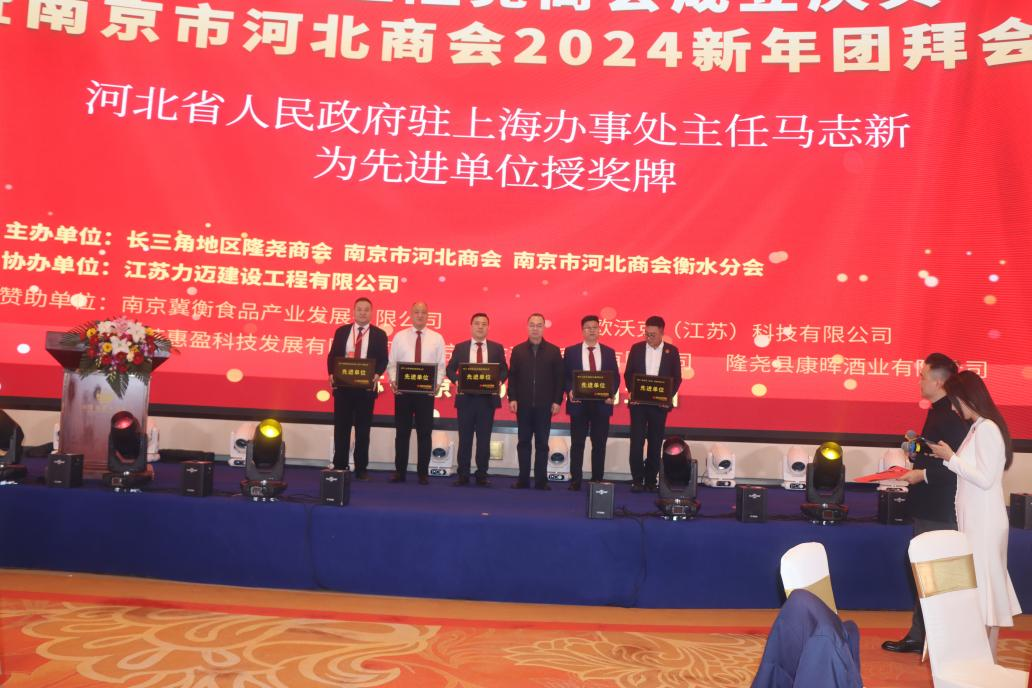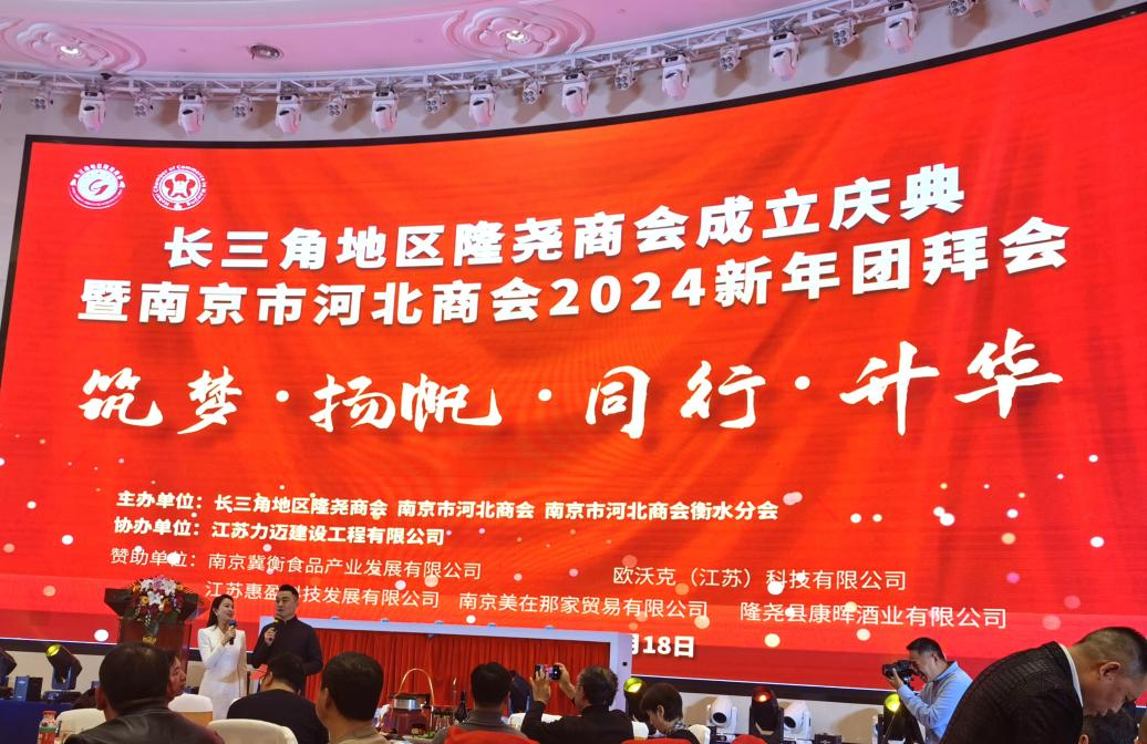晚六时,长三角地区隆尧商会成立庆典晚会和南京市河北商会2024新年团拜会联袂在南京市白金汉爵大酒店201厅举行,江苏省委原副书记任彦申出席晚会并致辞,河北省人民政府驻上海办事处主任马志新,邢台市政协副主席、市工商联主席王建江,南京市工商联副主席陈荣,隆尧县委副书记陈彦民等领导出席晚会,长三角地区三十余家河北商会会长、秘书长,在宁各界河北籍知名人士、乡贤,南京市河北商会全体同仁300人到会祝贺。