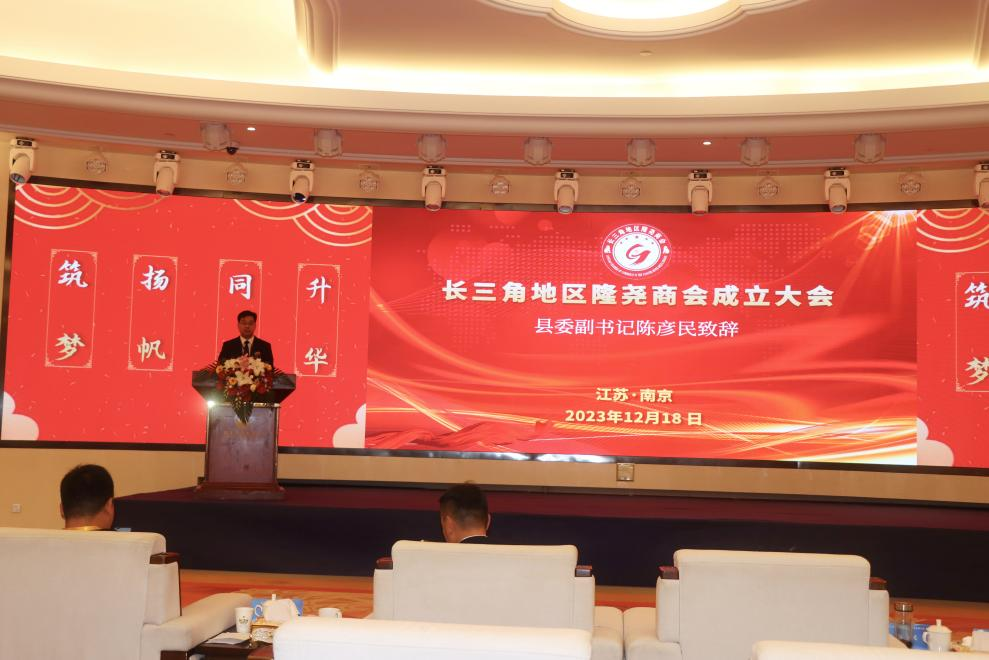 陈彦民代表隆尧县、县政府致辞,对商会的成立和新当选的会长、各位副会长及第一届理事会全体成员表示热烈的祝贺!并指出,长三角地区隆尧商会的成立,是隆尧县经济社会发展中的一件大事,也是长三角地区隆尧老乡们的一件喜事。2023年,隆尧县克难攻坚,拼搏进取,经济社会取得突破性发展。成绩的取得,离不开县委政府的正确领导,也离不开诸多隆尧籍在外老乡的支持和帮助。长三角地区隆尧商会的成立,标志着在长三角地区创业、兴业的隆尧人有了自己的家,在县委政府和驻地企业之间架起了桥梁,将大大增强长三角地区隆尧籍企业家的向心力和凝聚力,进一步激发长三角地区隆尧籍企业家的哺乡之心、兴乡之志。他希望,长三角地区隆尧商会要充分发挥桥梁和纽带作用,树立良好形象,承担社会责任,为会员企业做好服务。商会成员在加快自身发展的同时,继续回馈桑梓,回报故土,积极投身到隆尧经济社会发展中,充分利用自身资源优势,成为隆尧的“招商大使”、“形象大使”,更好发挥“以商招商”作用,吸引更多企业家来隆投资兴业、为家乡社会经济高质量发展作出新的贡献。