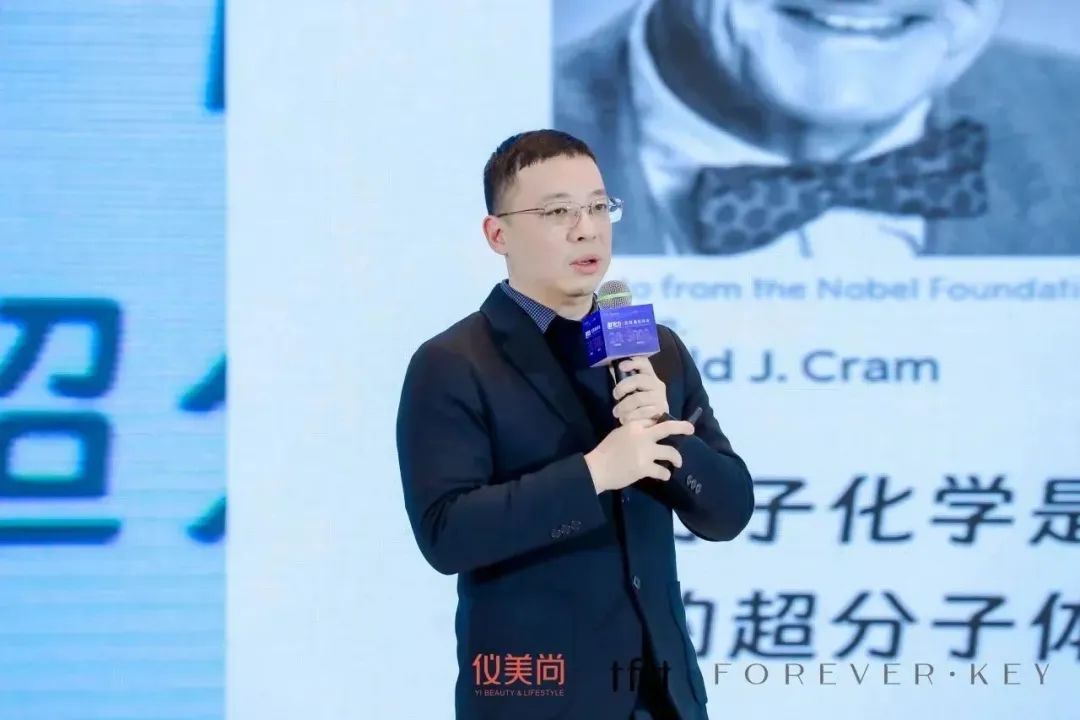 张教授在演讲中表示:"中国原料技术在快速发展,在一些细分行业赛道甚至已经引领国际市场。今天,希望通过我们的工作能够构建原料级的壁垒,帮助化妆品品牌和企业共建材料基础研究生态帮助国人共赴国货崛起之未来。"