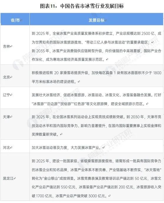 由于冰雪行业发展地域性较强的特点,我国出台相关冰雪行业发展规划并设立目标的城市大多为与我国北部。