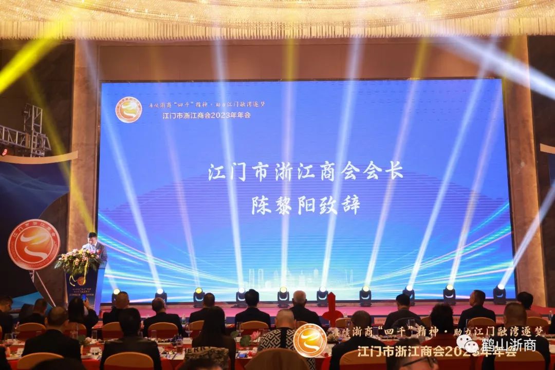 热烈祝贺江门市浙江商会2023年年会庆典圆满举行,祝江门市浙江商会2024年凝聚新力量,踏上新征程,作出新贡献。
