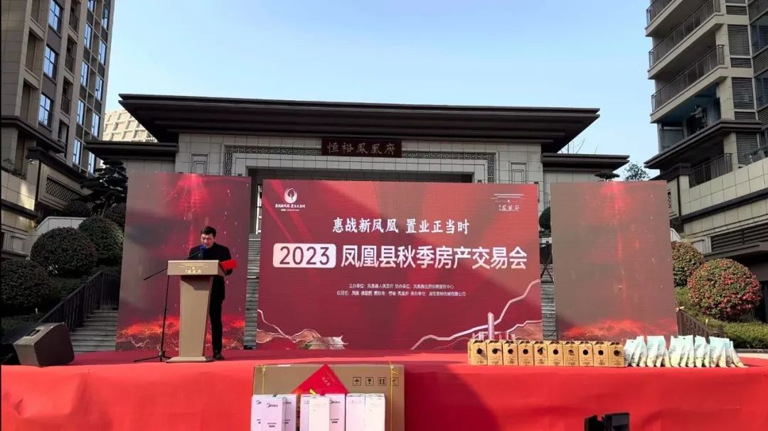随后,凤凰县住房保障服务中心主任周红辉为2023凤凰县秋季房地产交易会参展楼盘——恒裕·凤凰府授牌,各领导与现场来宾一同见证授牌仪式,将活动现场推向热潮。