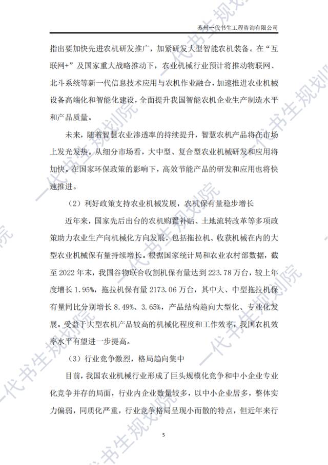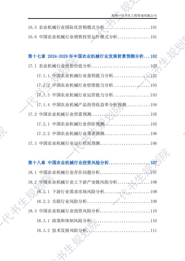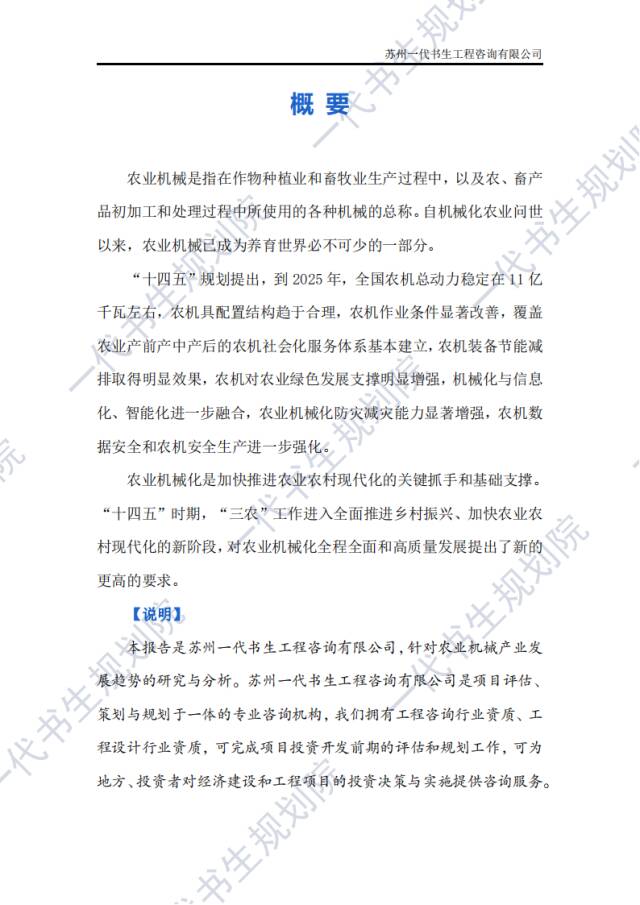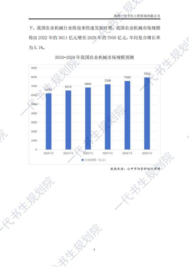 《2024年-2029年我国农业机械产业市场发展研究分析报告》分析研究、报告编制公司:苏州一代书生工程咨询有限公司。