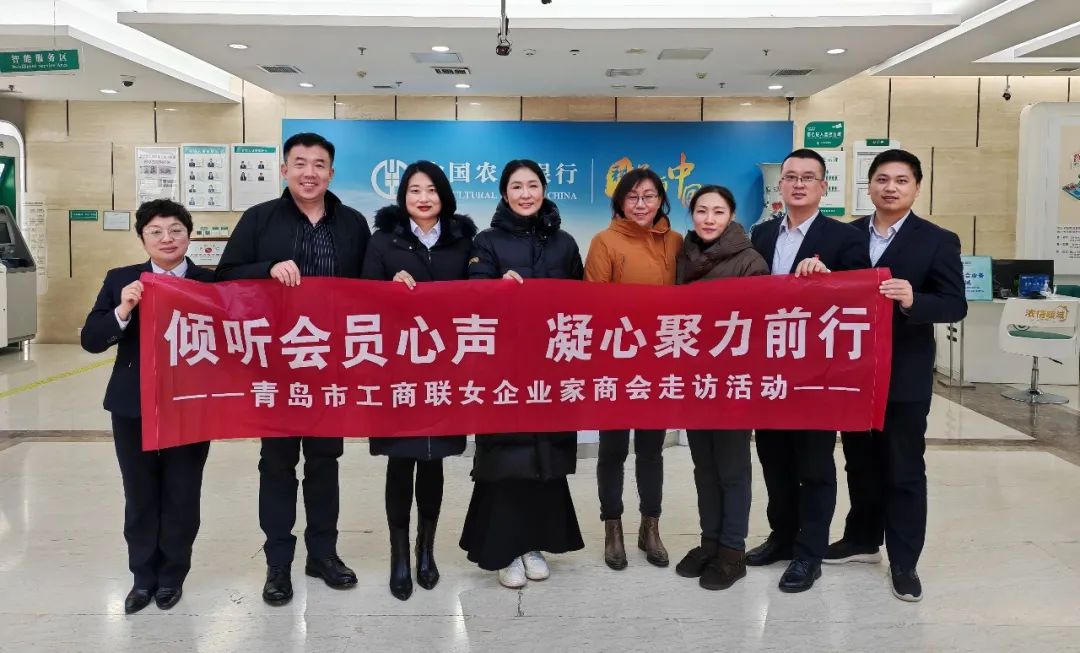 12月22日,商会“倾听会员心声 凝心聚力前行”第三期会员走访活动圆满完成。商会执行会长、青岛瑞思德生物科技有限公司董事长陈梦梦,副会长兼公益慈善专委会主任、青岛新大唐资产管理集团有限公司副总裁王翠华带领秘书处工作人员走访了会员企业鹿丽鹿时尚(青岛)贸易有限公司和中国农业银行青岛市分行营业部。