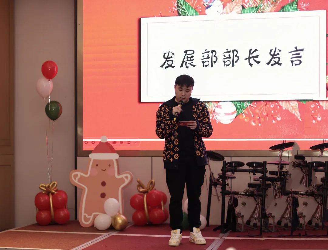 石狮青商会副会长、发展部部长黄锦镛,石狮青商会副会长、外联部部长吴文礼分别对过去一年来各自部门开展的工作进行了总结并给予了部员小伙伴们节日祝福。