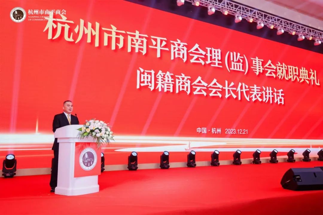 12月21日晚,浙江省福建商会团体会员单位杭州市南平商会二届一次会员大会暨理(监)事会就职典礼在杭州白金汉爵大酒店隆重举行。浙江省福建商会会⻓施⼈玮,执行会长兼党支部副书记陈灿军,常务副会⻓黄国莺,副会⻓蒋朝晖、叶进福、周永良、王晓立、黄培才、黄震,理事陈建生等应邀出席了活动,与杭州市南平商会全体会员及社会各界人士欢聚⼀堂,共贺共庆。