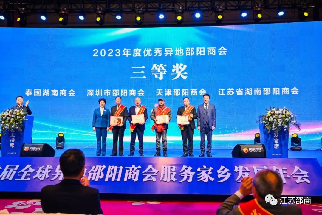 昨天(12月23日),首届全球异地邵阳商会服务家乡发展年会在邵阳市举行,市委书记严华出席并讲话,市委副书记、市长华学健致欢迎辞,市人大常委会主任周迎春、市政协主席周文出席。会上,我会荣获2023年度优秀异地邵阳商会三等奖,驻会执行会长李小辉代表商会上台接受表彰。