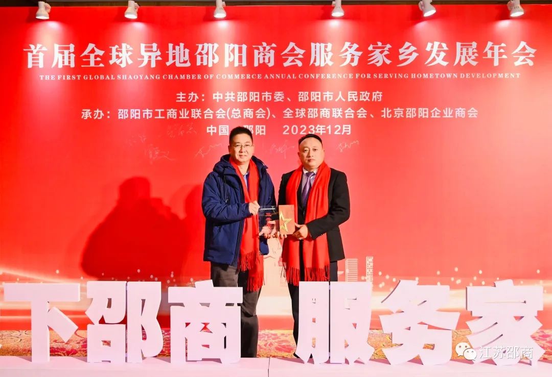 此次大会上,我会荣获2023年度优秀异地邵阳商会三等奖。荣誉来之不易,我们为之自豪!商会将以此作为新的起点,再接再厉,奋楫笃行,带领江苏邵商积极融入江苏邵阳两地经济社会发展,政企齐心、携手同行,把在外邵阳人的技术优势、资金优势、市场优势、信息优势、人才优势,转化为推动家乡经济高质量发展的新动力,努力创造出新时代新征程的新辉煌。