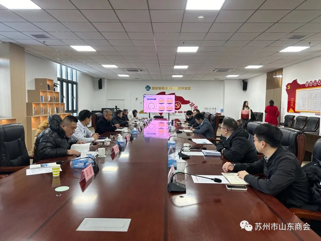 梅旭明会长对苏州市山东商会简况做了介绍。据不完全统计,近五年来,商会会员企业回乡投资额超过18.6亿,已经到位资金6.4亿。梅会长表示,自去年十月份济南市政府在苏州成功举办"2022济南(苏州)精准招商会",并与济南市委组织部副部长、市两新工委书记李开森共同为“苏济经济合作联络站”揭牌后,商会与济南市互动频繁,我会一些企业已多次来济南进行项目对接,这次前来也带来一些洽谈项目。希望通过本次考察积极引导商会企业家为济南的发展建设添砖加瓦。
