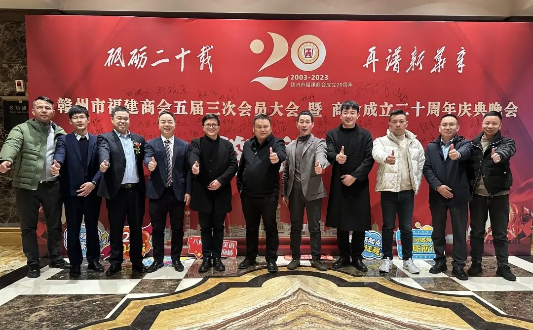 12月23日,我会会长郑学佃,监事长廖小军,常务副会长、党支部书记余文锋,常务副会长张初财,秘书长吴永加,副会长虞发寿、陈昌务、徐熖明一行受邀参加赣州市福建商会五届三次会员大会暨商会成立二十周年庆典晚会。
