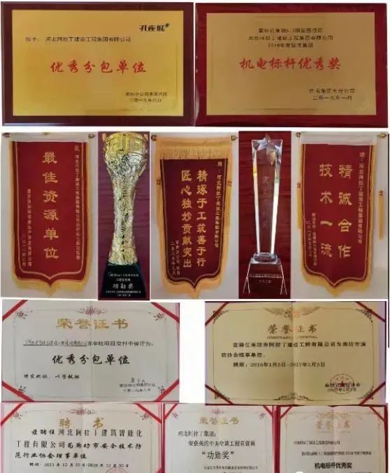 河北阿拉丁建设集团具有河北省建设厅颁发的“消防设施工程专业承包壹级”、“建筑机电安装工程专业承包叁级”、“市政公用工程施工总承包叁级”、“环保工程专业承包叁级”资质证书、通过了“9001质量管理体系认证”、“14001环境管理体系认证”、“45001职业健康安全管理体系认证”。