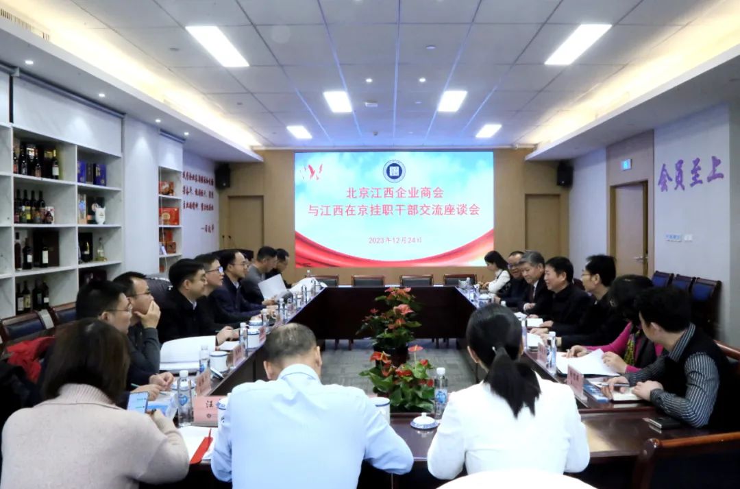 2023年12月24日,北京江西企业商会与江西在京挂职干部交流座谈会在北京赣商之家举行。江西省政府驻北京办事处党组成员、副主任高延平,北京市异地商会第三联合党委书记、北京江西企业商会会长刘经纶出席会议并讲话。北京江西企业商会秘书长谢忠宝主持会议。
