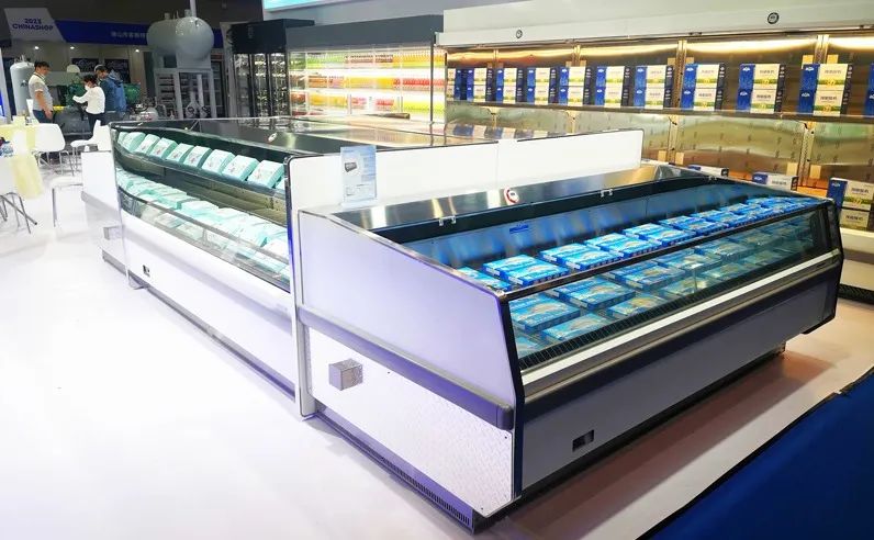 2023年中国零售展,通用富士全系列推出会员店双温岛柜、立柜、寿司柜和异型双层服务柜、环平柜、双面半高柜、蛋糕柜、酒柜等商超主打产品。