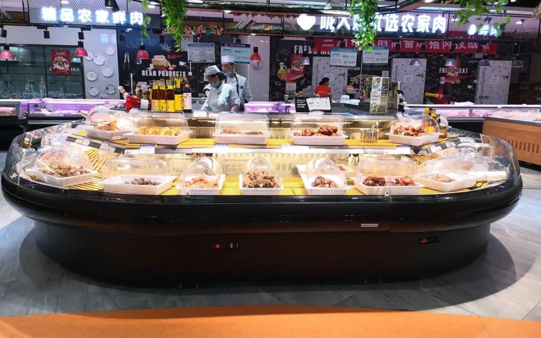 相对于宽尺寸的环平柜,窄环平柜更适合总面积小、生鲜占比高的中超或精品超市。