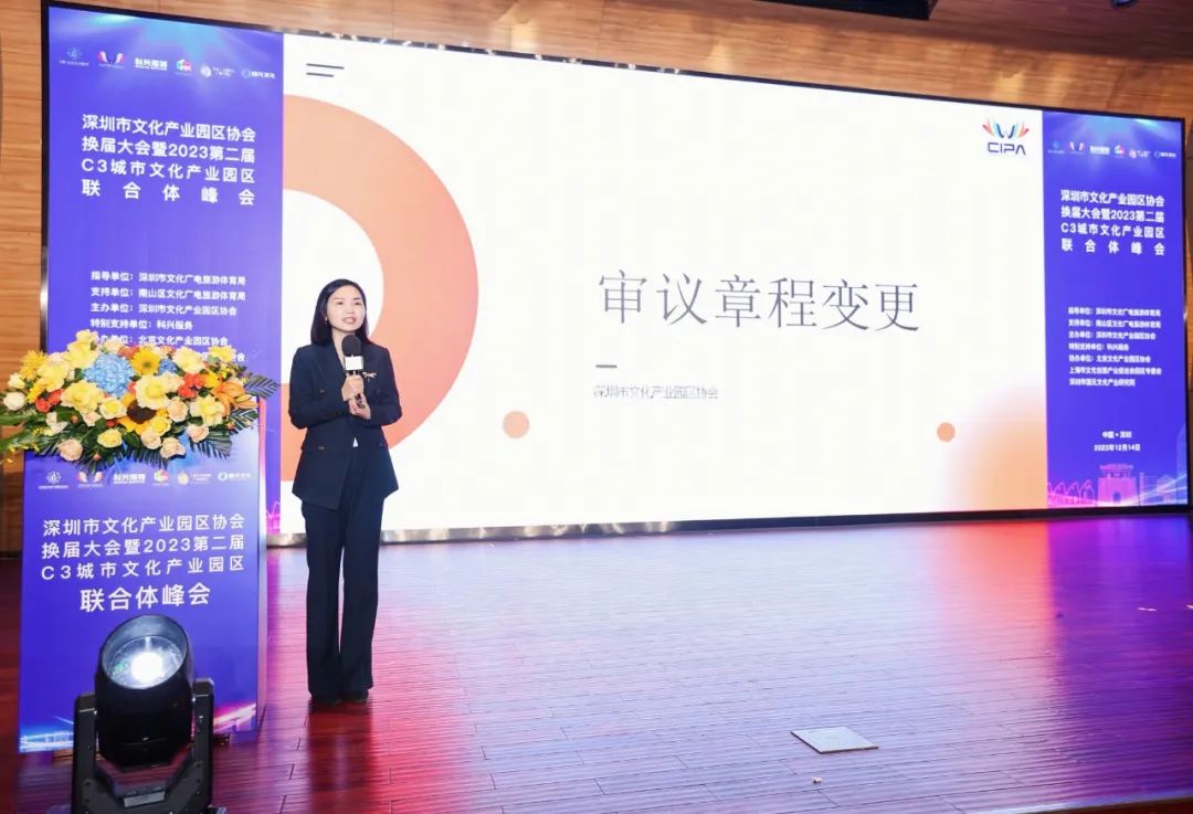 大会首先审议《深圳市文化产业园区协会章程》变更,协会第二届理事会执行秘书长彭佩韦上台对第二届理事会工作进行了全面的回顾。