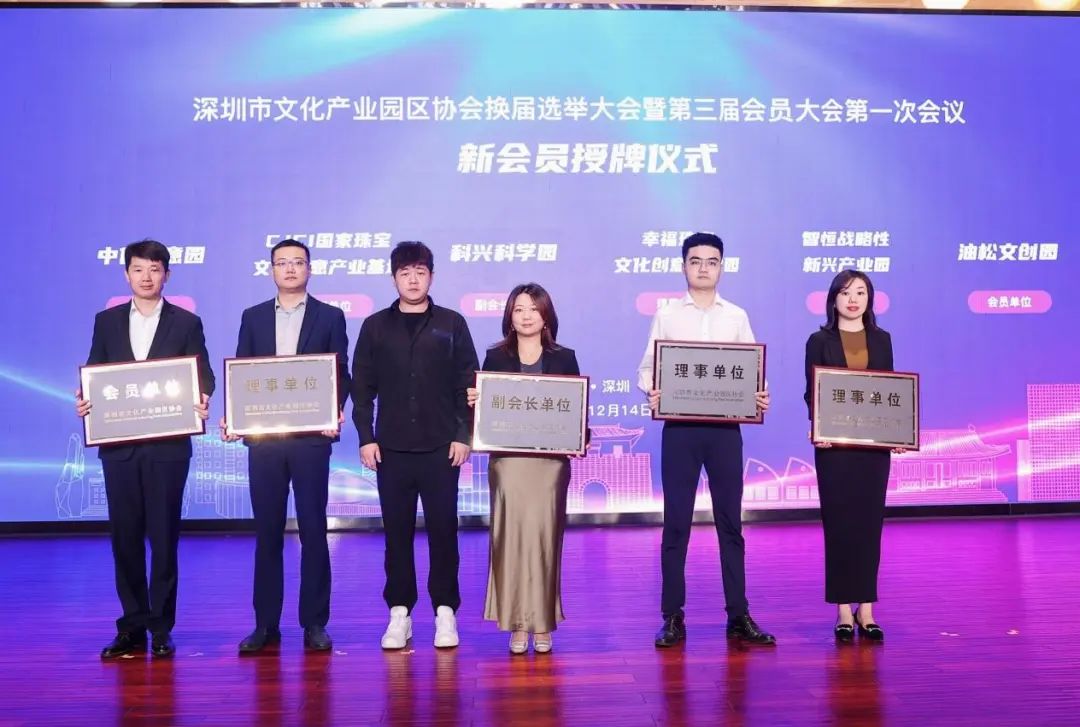 ▲深圳市文化产业园区协会法定代表人钟梓轩为新入会会员单位授牌