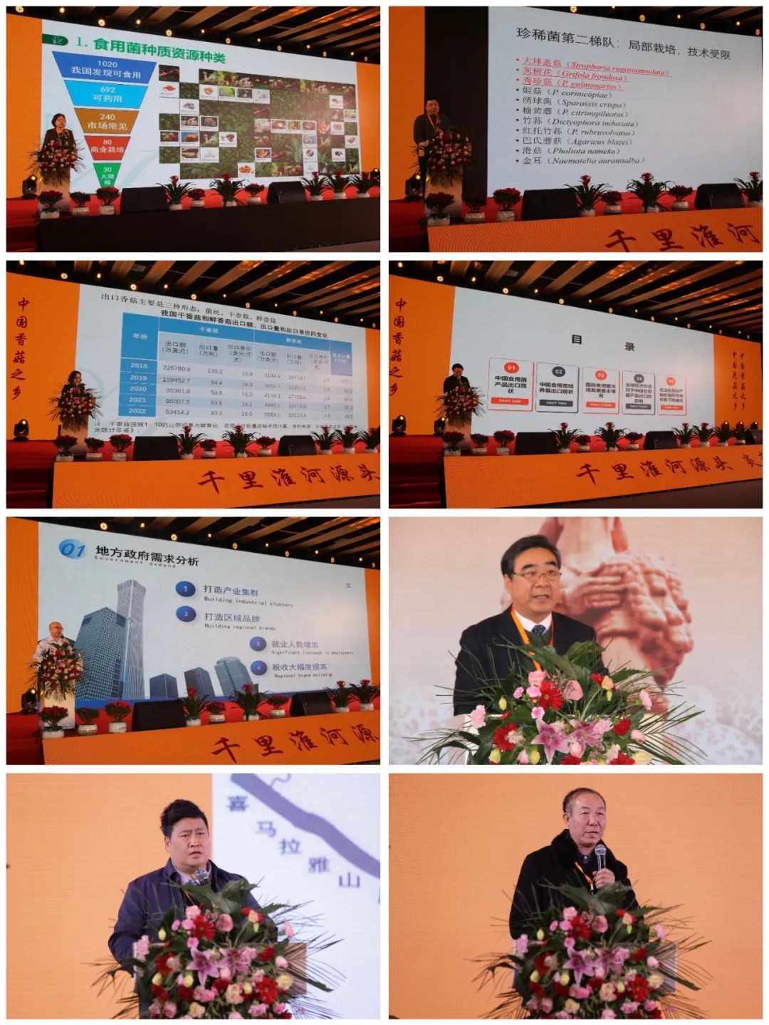 开幕式结束后,香菇全产业链高质量发展大会正式开始。国家食用菌产业技术体系首席科学家谭琦研究员围绕“我国香菇科技发展现状”、华中农业大学边银丙教授围绕“食用菌生产、科普与消费的关系”、上海农科院食用菌研究所副所长宋春艳围绕“我国香菇产业现状及全产业链提升路径”、山东艾泽福吉生物科技有限公司董事长郭宏志围绕“香菇菌棒进出口贸易”先后作报告分享;哈尔滨国际商品交易中心总经理杨克俭分享哈交所打造县域农产品产业集群新模式;湖北省随县人民政府副县长何仁章,河南省泌阳县人民政府副县长李晓,河北省阜平县食用菌专家组组长侯桂森领导分别作经验交流。