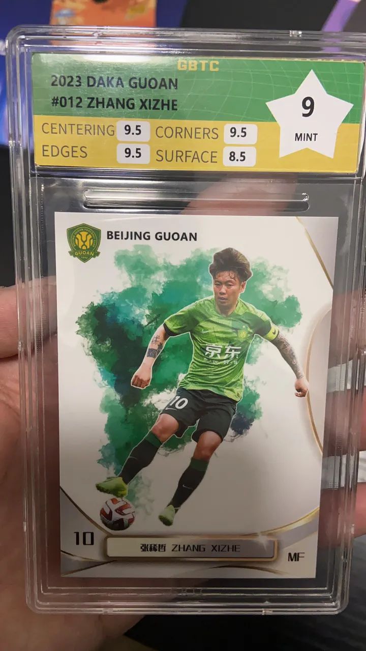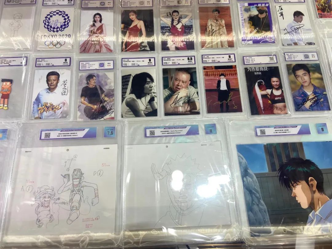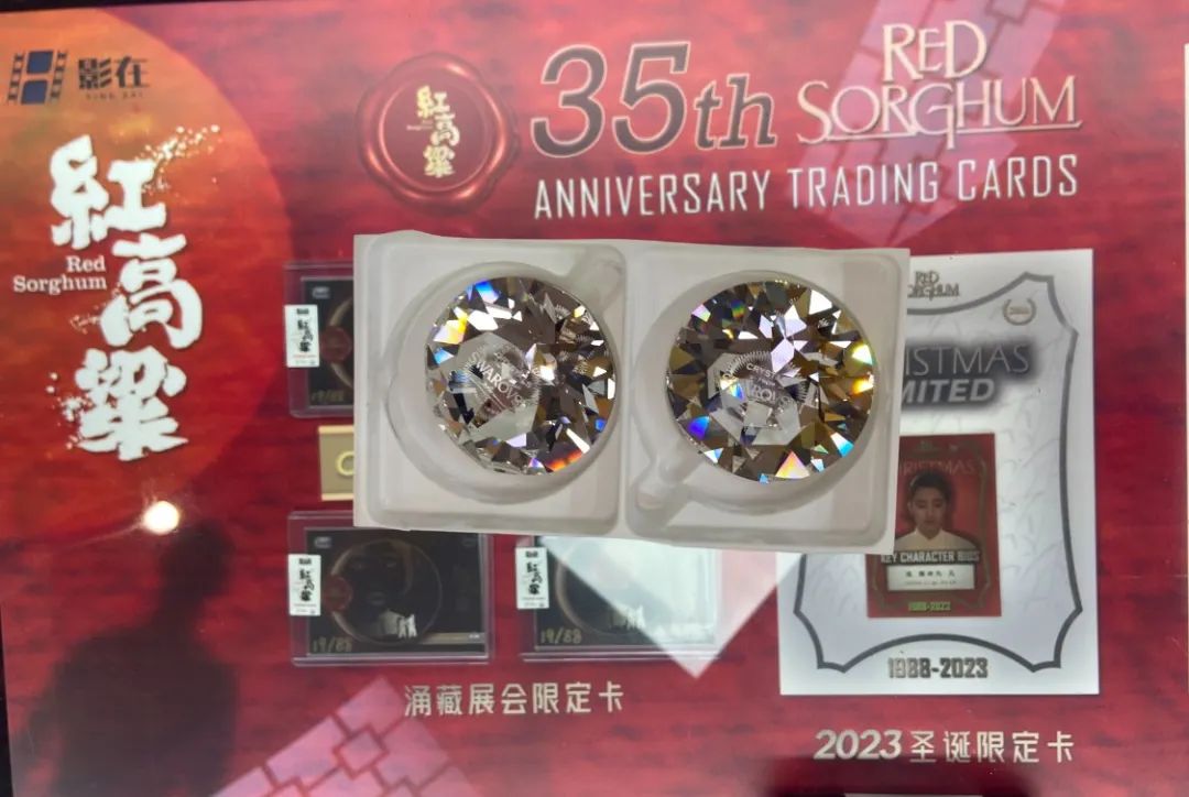 来到思享集「红高粱」、「世界遗产」收藏卡主题展位,因为之前和发行方哥们线上交流过,头一天网上也约定要见面聊聊。一见面介绍后就把我拉到展位里面交流,还展示了他那两颗硕大的施华洛世奇水晶,对收藏卡和水晶有兴趣的老板可以联系他。来到熟人的展位要支持一下,9.9元买了一张红高粱展会版收藏卡,抽到了一张编剧普卡。来到卡星时代展台,拆葫芦兄弟的人很多,如果说天书奇谭对我没有太深刻印象的话,葫芦兄弟就是伴随我很多年的童年精神食粮,期间一个姑娘拆到了一张特别精美的葫芦兄弟手绘卡,最后扫码关注公众号和加微信送了一个会展卡包。之后与CGC、公博、7788、一瞬、PGS、遇见潮玩等展位的工作人员进行了较为深入的交流。因为相同的爱好走到一起,共同的目标相谈甚欢,彼此没有什么距离感,这种体验十分愉快。▲达咖2023国安俱乐部系列张稀哲球星卡公博评级卡特别说一下,从公博评级那里获得了评级卡小礼品非常喜欢。