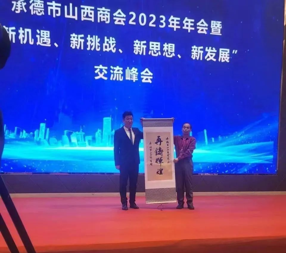 2023年12月24日,承德市山西商会以“新机遇、新挑战、新思想、新发展”为主题的2023年会员大会庆典在承德元宝山假日酒店隆重举行。河北省境内山西商会代表、各界嘉宾及山西商会会员200余人欢聚一堂,共襄盛举。我商会秘书长王世亭参加此次年会,我商会为会议的召开赠送了“再铸辉煌”的贺联。