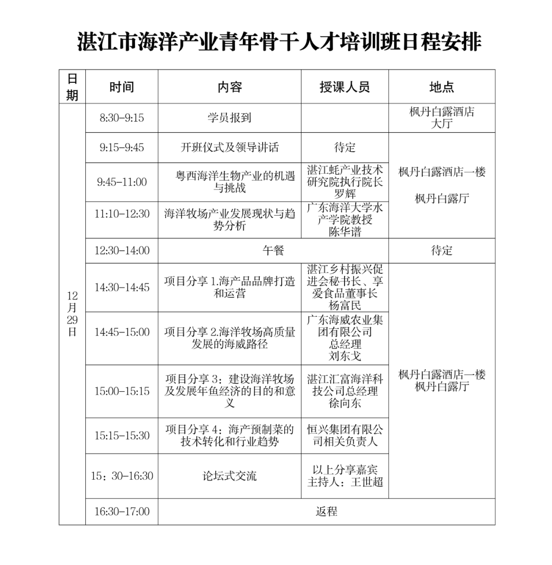 湛江市海洋产业企业高管人员以及涉海产业青年企业家,限100人,择优录用,以主办方通知为准。