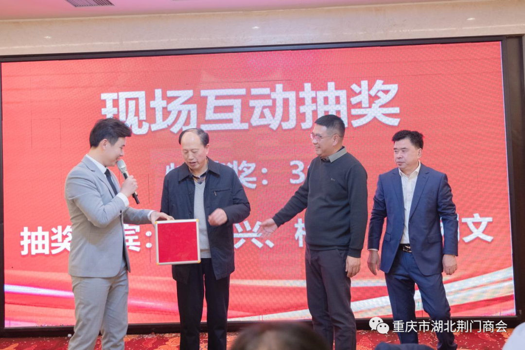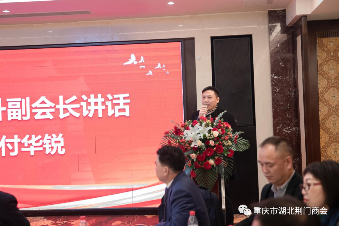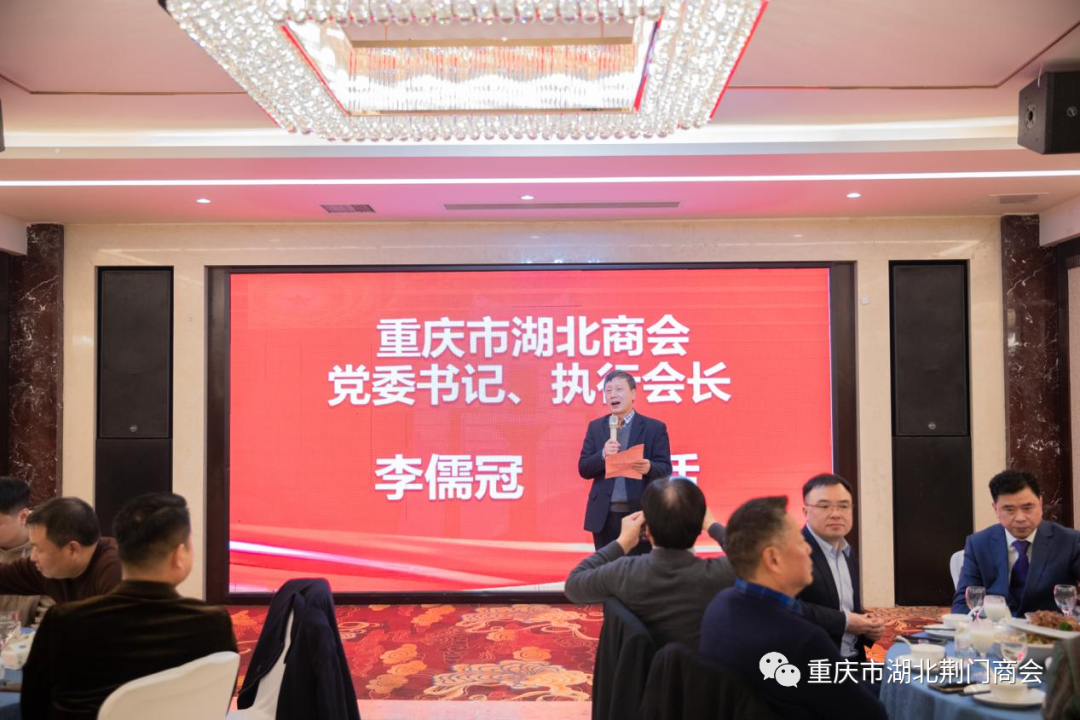 重庆市湖北商会党委书记、执行会长李儒冠作了重要讲话,他指出,重庆市湖北荆门商会召开2024年迎春团拜会,我谨代表在渝湖北籍商会、代表亚军会长,也代表在渝湖北籍商会同仁向大会召开表示热烈祝贺!向各位老乡致以亲切问候!荆门商会自成立以来,在田圣兴为会长的理事会带领下,以乡情为纽带、以商会为平台,互助合作、携手并进,为家乡招商引资、招才引智方面成效明显,已成为在渝荆门籍人士的温馨之家!在今后的岁月里,将始终秉承“巴渝楚商一家亲”的理念,团结互助,共商共建、资源共享、共谋发展,共创巴渝楚商品牌!奋力谱写商会建设新篇章!