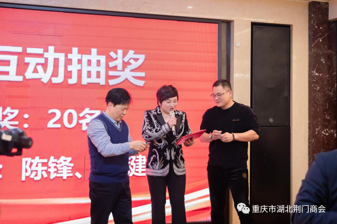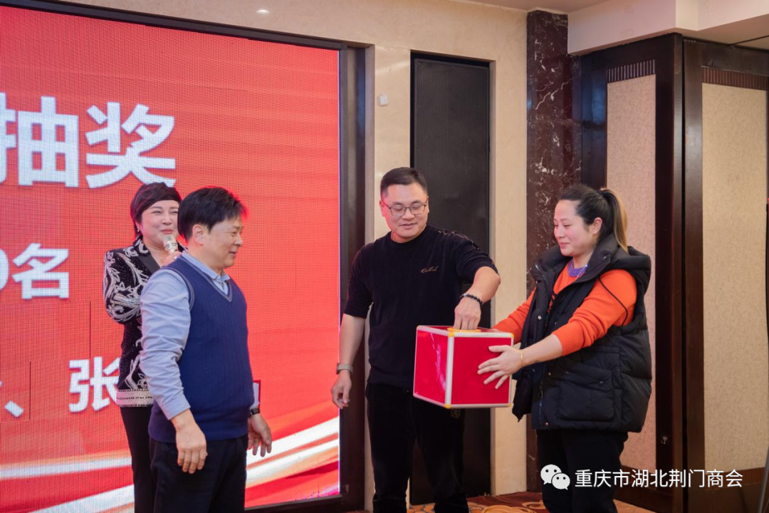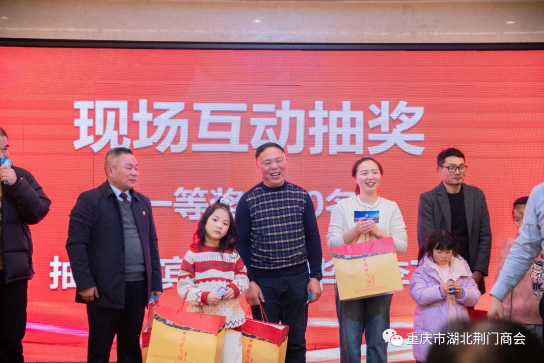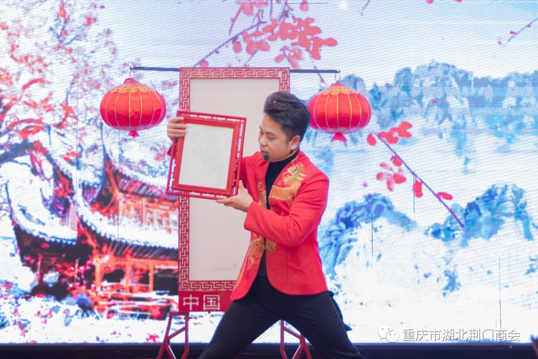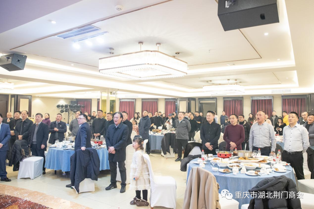 在迎春团拜会答谢晚宴上,一支《奔向辉煌》舞蹈拉开帷幕,会长田圣兴致欢迎词:代表理事会对过去一年里,给予商会各项工作关心和大力支持的各位领导、各兄弟商会、顾问团老领导、在渝荆门籍老乡、各界朋友、各位会员及家属致以衷心感谢和新春祝福!对即将到来的2024年充满希望,坚信2024年的春天会更加美好!