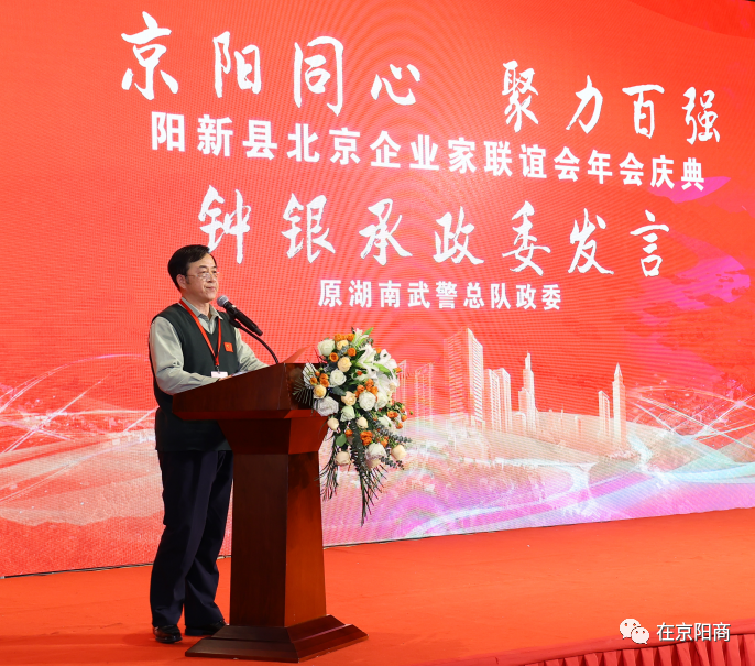 钟银承政委作为联谊会智囊团代表,向联谊会新的领导班子表示热烈的祝贺,并向在京创业奋斗的阳新籍企业家致以最美好的祝愿。他表示,联谊会是阳新人在北京的家,是汇聚乡情、凝聚力量、维护权益、沟通社会、共创商机的重要平台,是在京企业与家乡政府沟通联系的重要纽带,希望联谊会为在京企业家、会员、家乡经济社会发展作出新的贡献,相信在家乡政府和广大同乡的关心支持下,在联谊会领导班子和全体会员的共同努力下,联谊会一定越来越好。